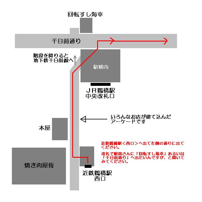 近鉄線をご利用の方は鶴橋駅西口を出てください