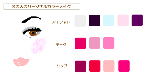 パーソナルカラータイプが冬の人のメイクカラーパレットです。